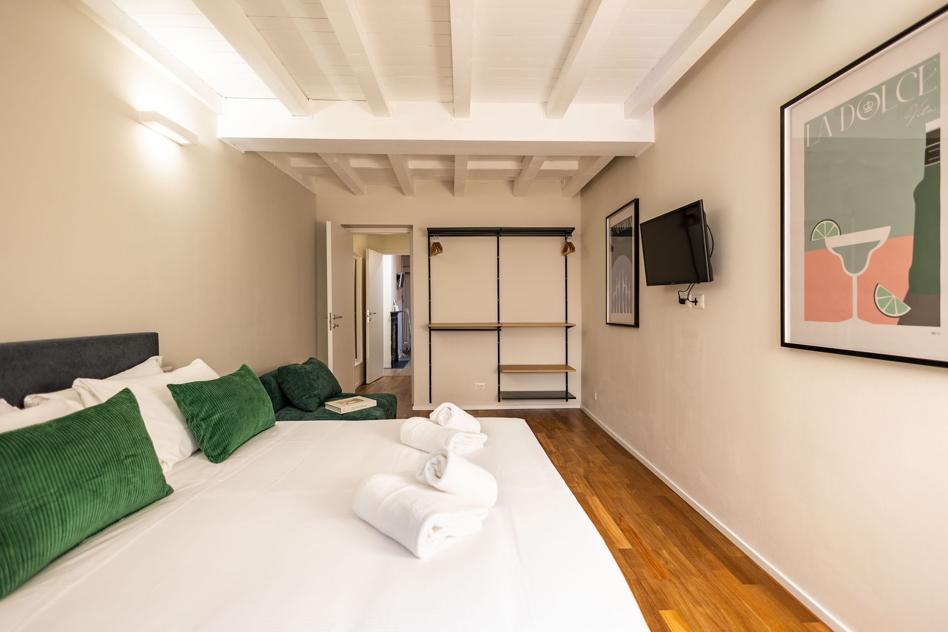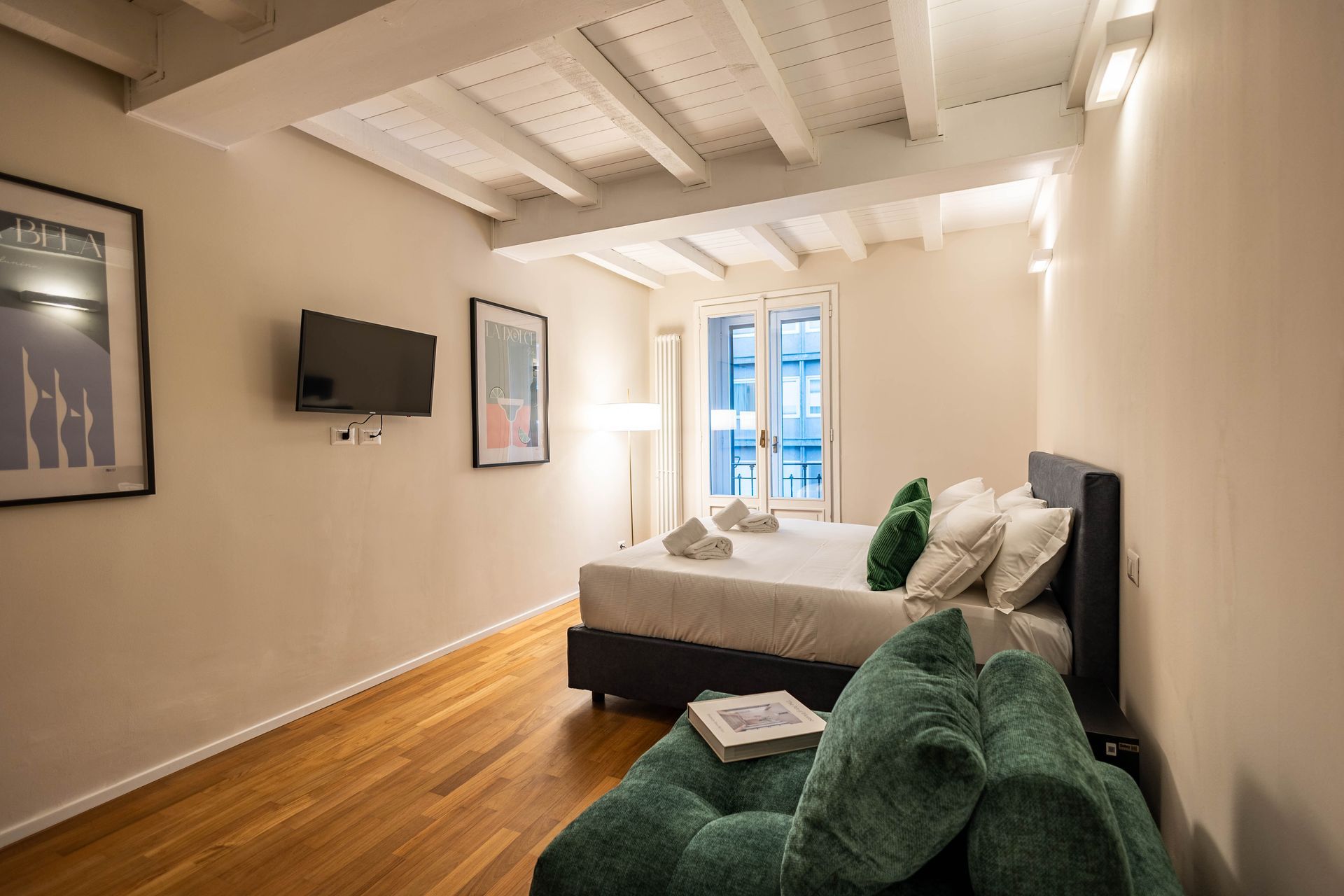 Finely furnished rooms and suites, with an eye for design but also for everyday convenience: carefully selected bed linens and bath towels, a beauty kit with creams and soaps, and Wi-Fi in every room. Comfort, relaxation, and services—all you have to worry about is enjoying your home.